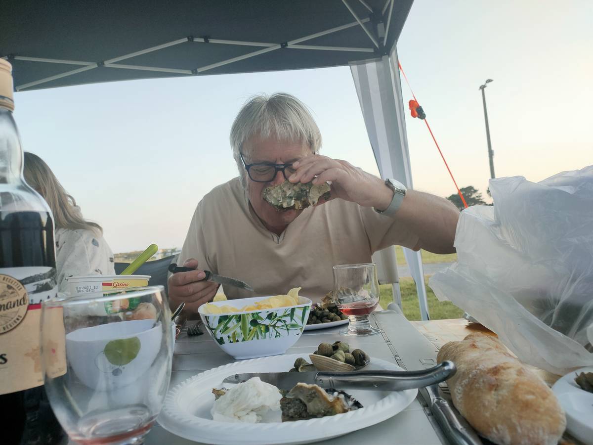 Vendredi 31 mai, encore pêche de belles huitres et palourdes. Michel lui, se charge des bigorneaux pour l'apéro... Nous dégustons le fruit de notre labeur !!!