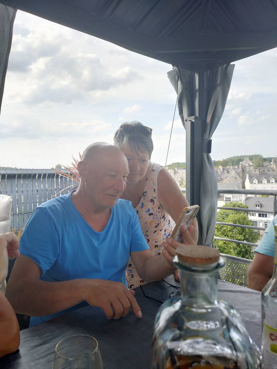Vendredi 07 juin... Au revoir Gâvres, nous partons en convoi vers le camping municipal d'Hennebont. Une surprise nous attend chez nos ami et hote... une petite réception dans leur propriété qui domine Hennebont :
