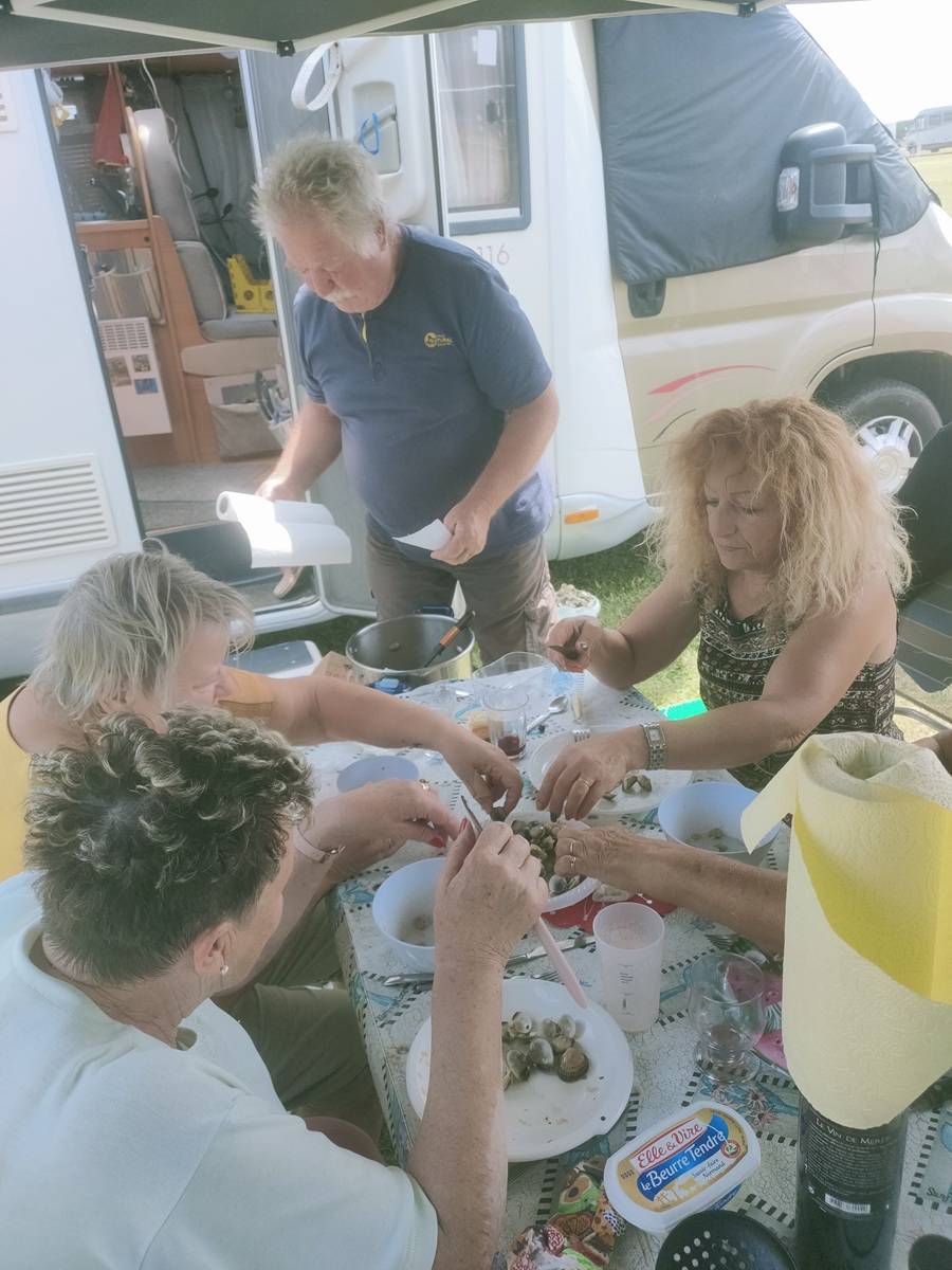 Vendredi 31 mai, encore pêche de belles huitres et palourdes. Michel lui, se charge des bigorneaux pour l'apéro... Nous dégustons le fruit de notre labeur !!!