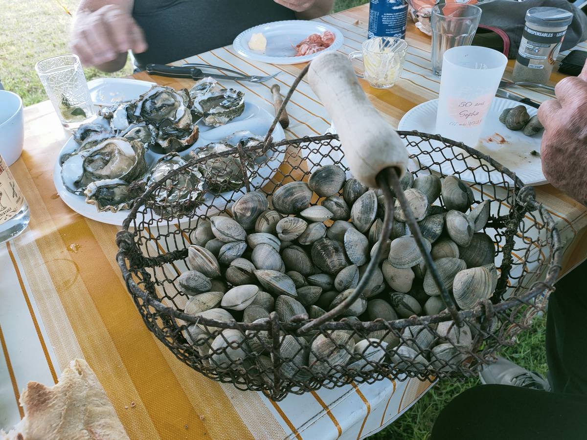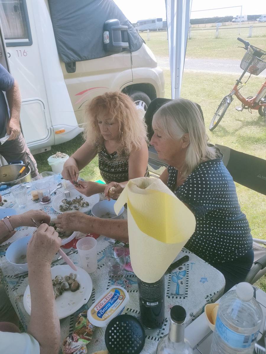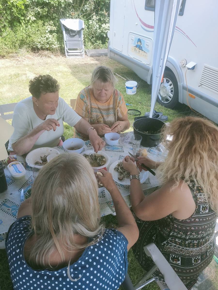 Lundi 03 juin, balade à Saint-Cado, puis roche tremblante de Huelgoat, enfin, nous finissons la journée par un apéro dinatoire en dégustant les palourdes et huitres de notre pêche de la veille :