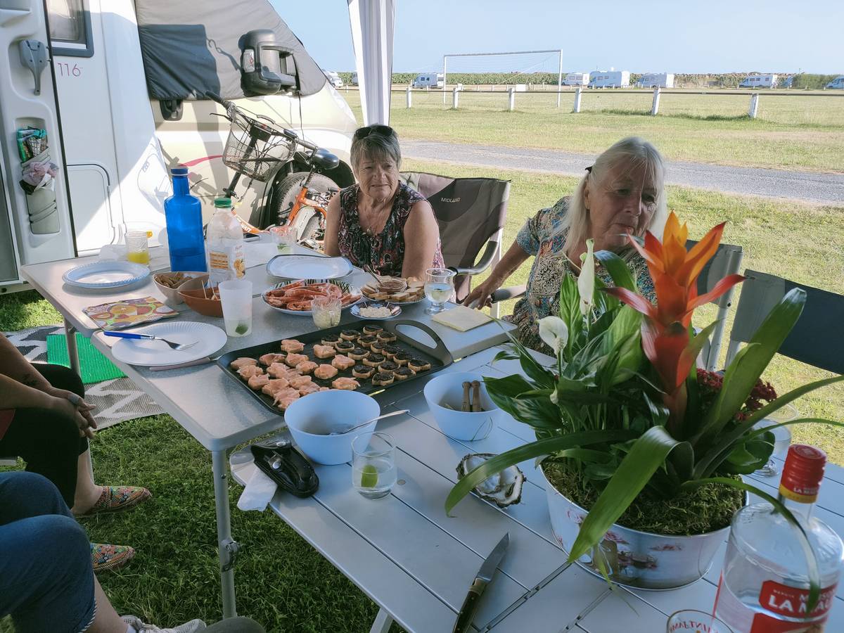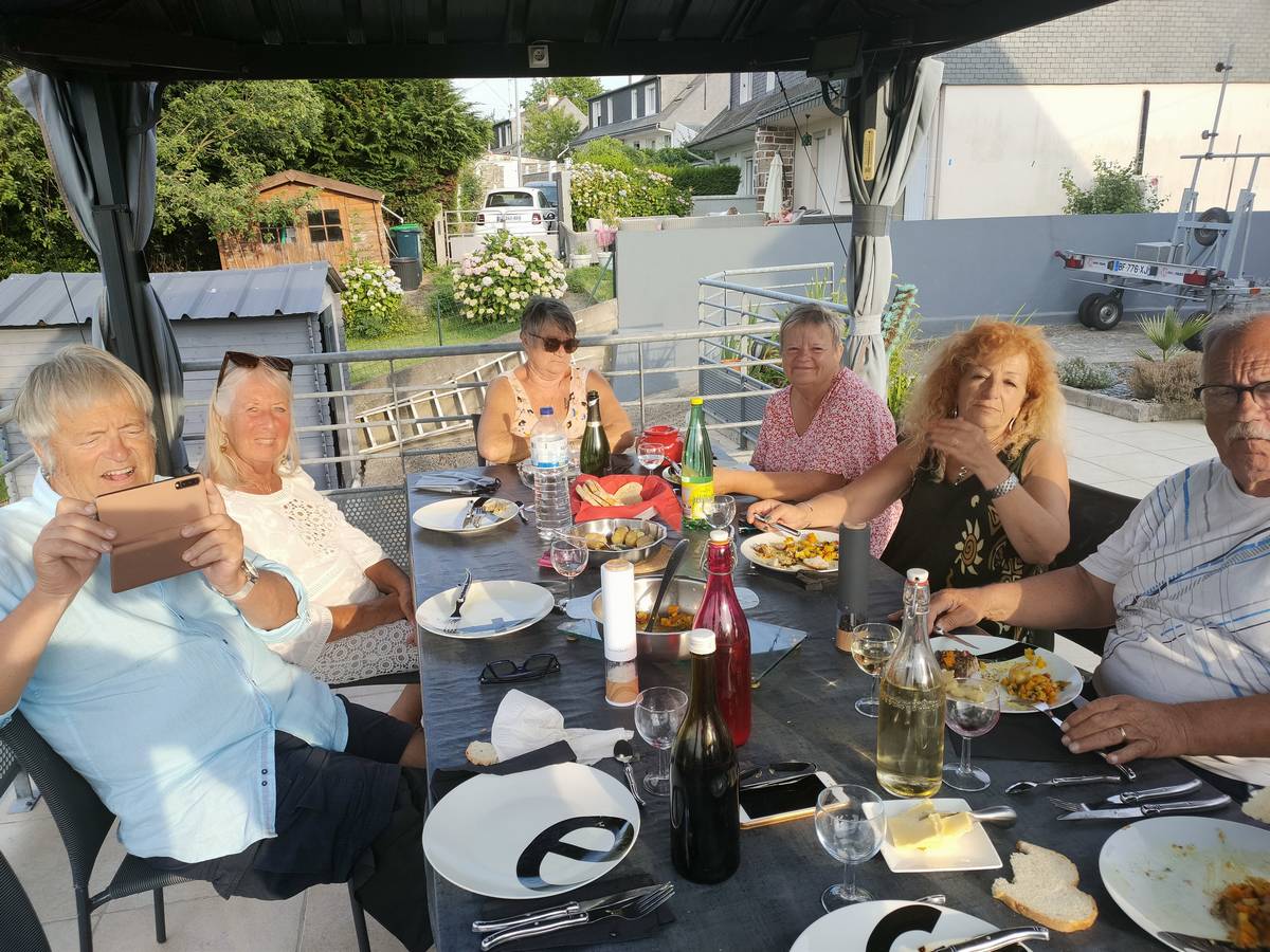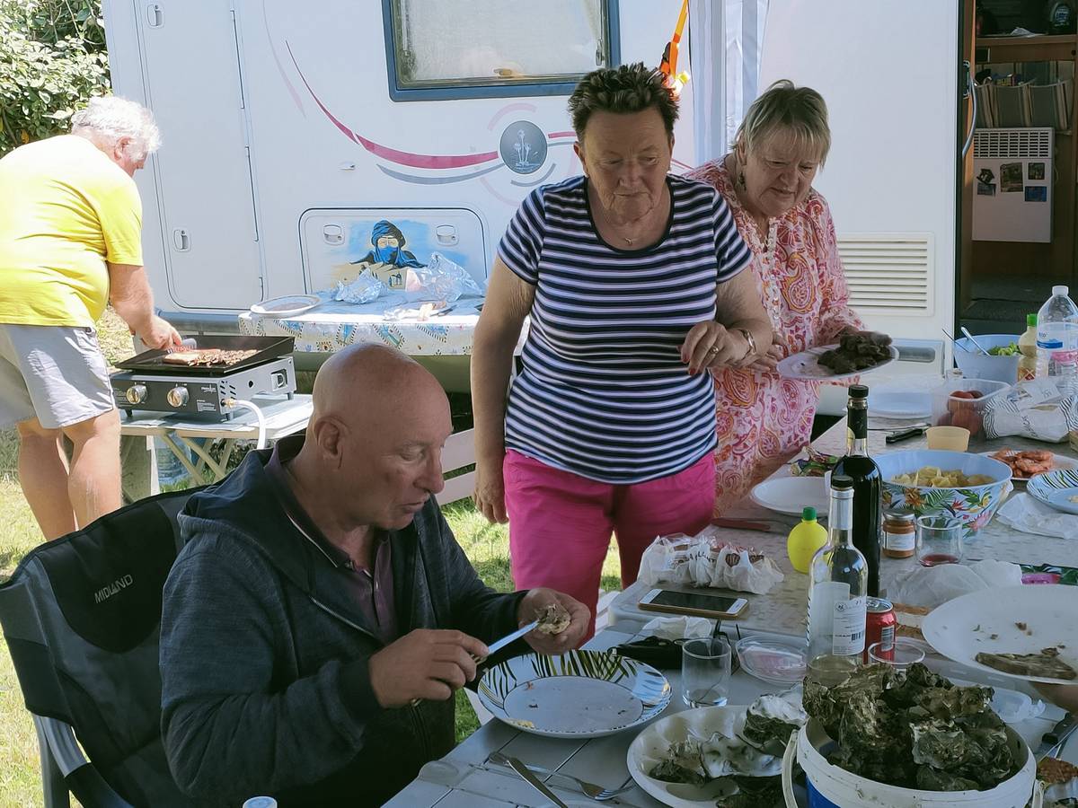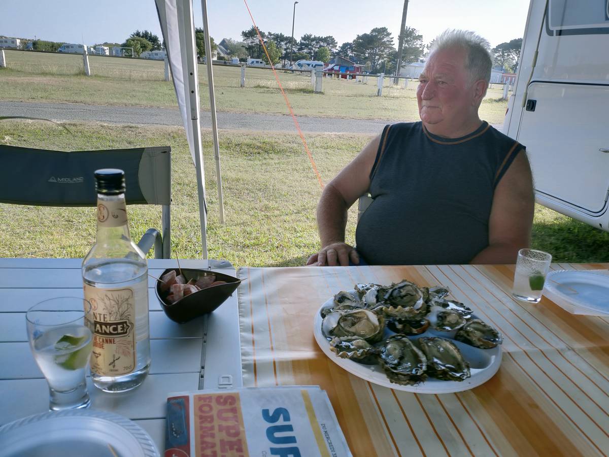 Lundi 03 juin, balade à Saint-Cado, puis roche tremblante de Huelgoat, enfin, nous finissons la journée par un apéro dinatoire en dégustant les palourdes et huitres de notre pêche de la veille :