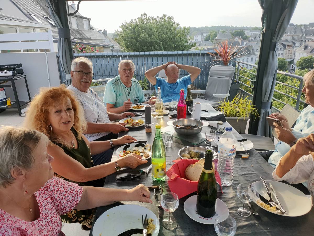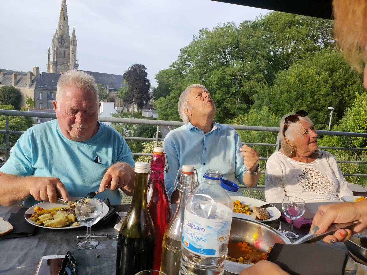 Vendredi 07 juin... Au revoir Gâvres, nous partons en convoi vers le camping municipal d'Hennebont. Une surprise nous attend chez nos ami et hote... une petite réception dans leur propriété qui domine Hennebont :